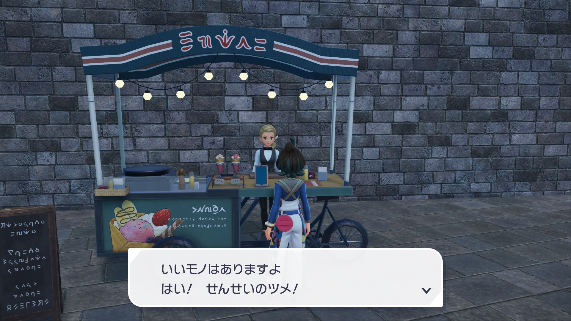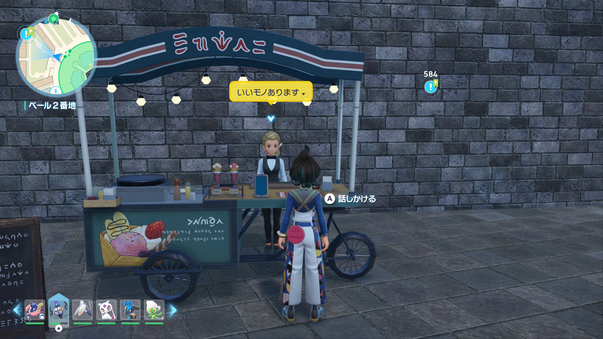 せんせいのツメは、ワイルドゾーン2番エリア付近にあるクレープ屋の女性に話しかけることで受け取れます。