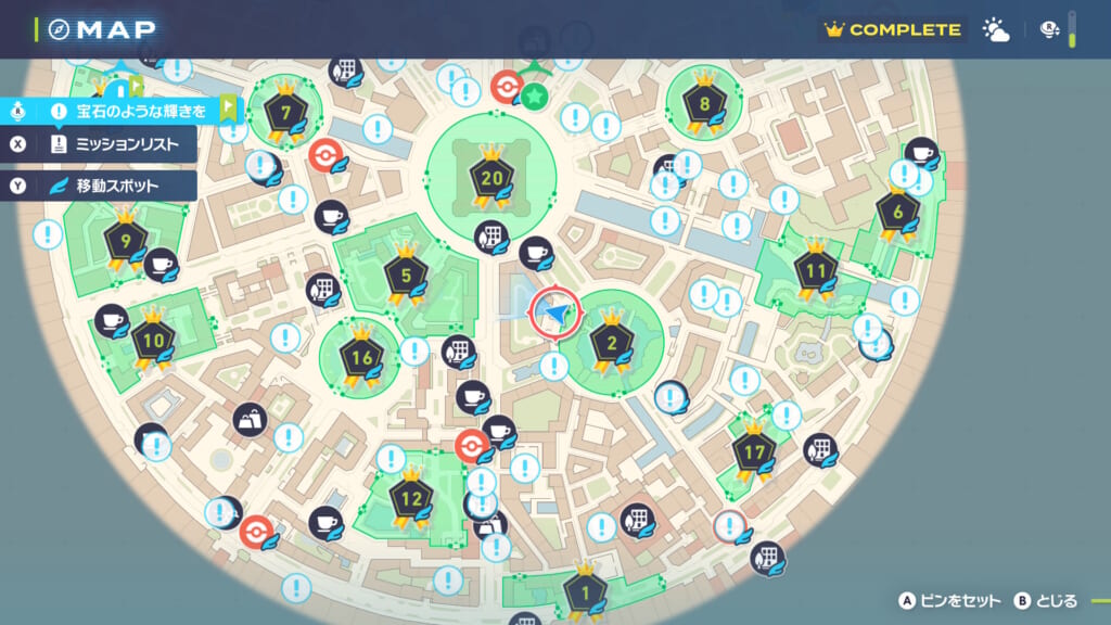 ポケモンセンター:ジョーヌから西に進みホロベーターで屋上に登って東の屋根にロトムグライドで渡る |
