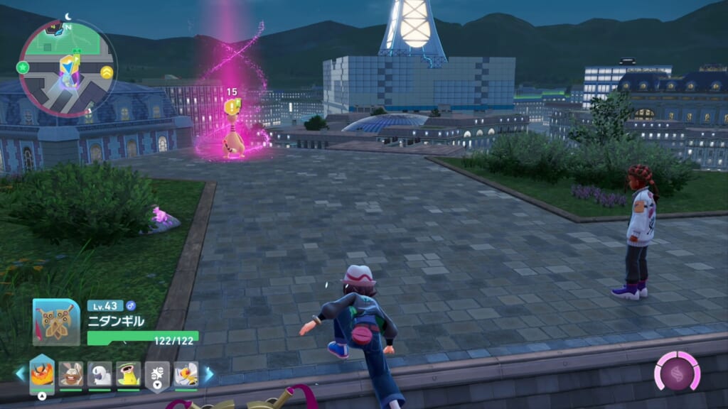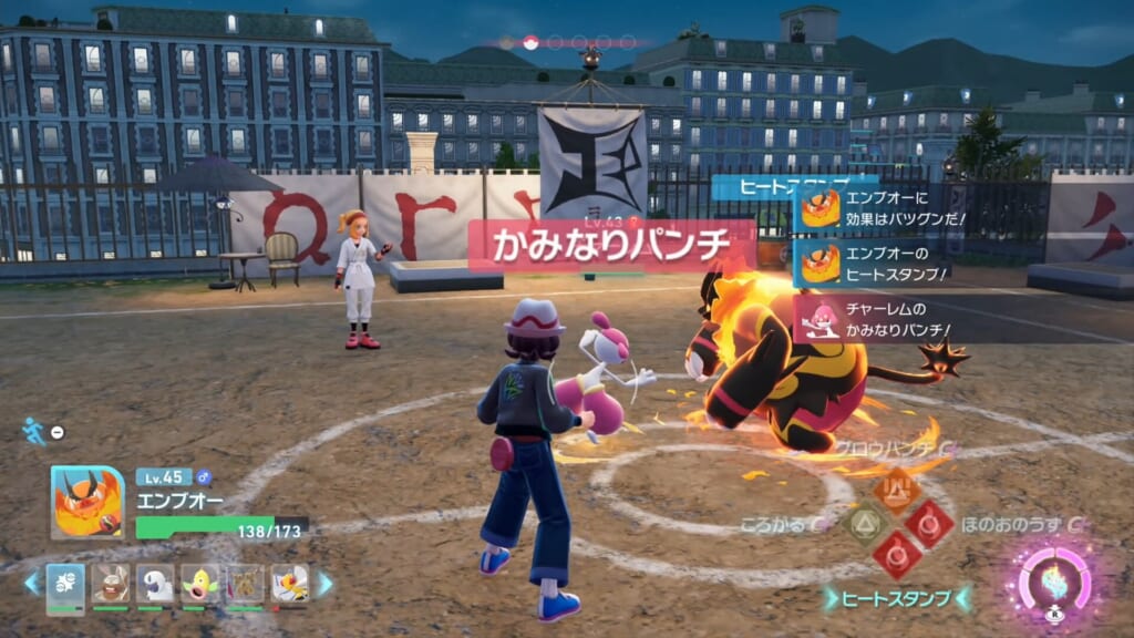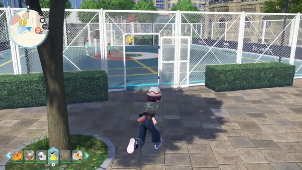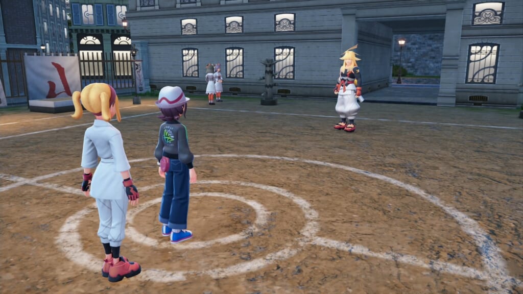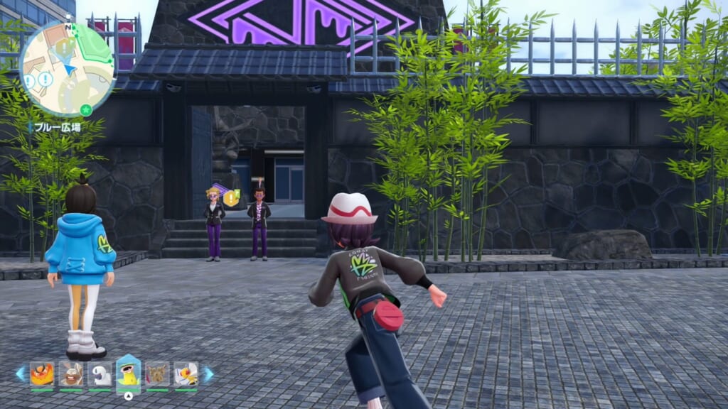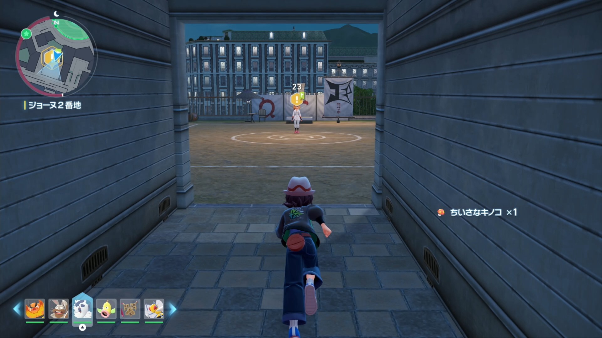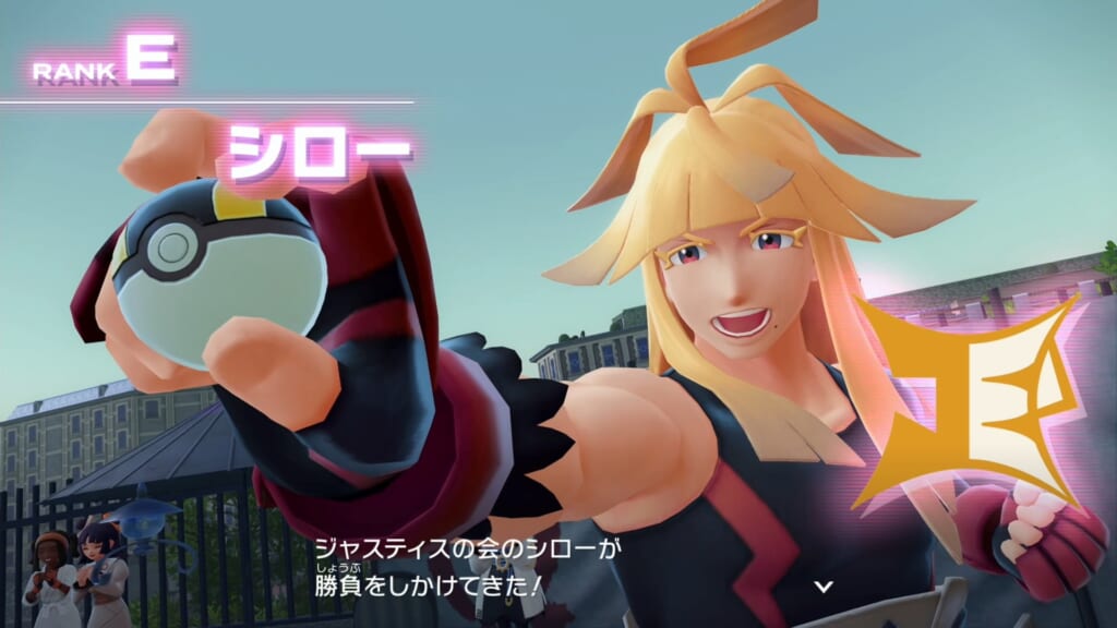 ルージュ1番地にあるメディオプラザ近くのバトルコートへ行き バトルコート内の人に近づくと、トレーナーとの2連戦が始まります。