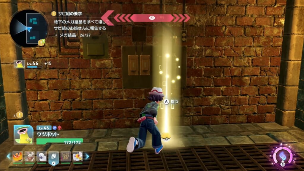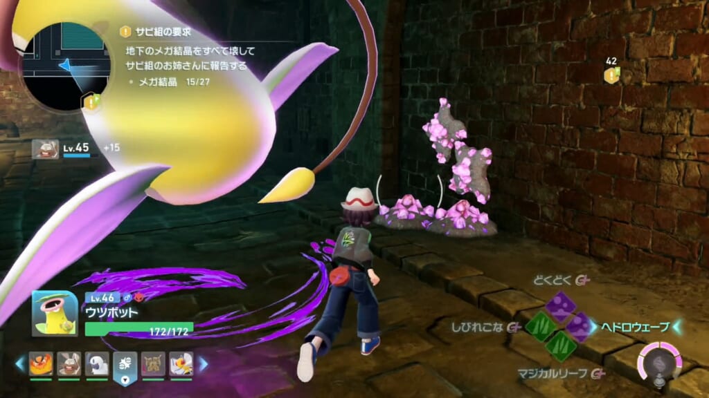 地下水道内にあるメガ結晶を27ヶ所すべて壊します。範囲の広い技や、攻撃速度が早い技を使うと効率的に壊せます。