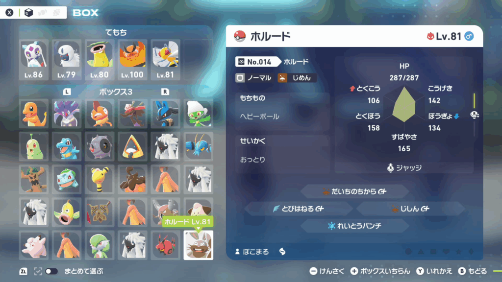 インベントリにないボールはボール選択画面に出てこなくなるので、貴重なボールを誤って投げてしまうのが怖い方は、適当なポケモンにボールを持たせてボックスに預けておくことで対策が可能です。