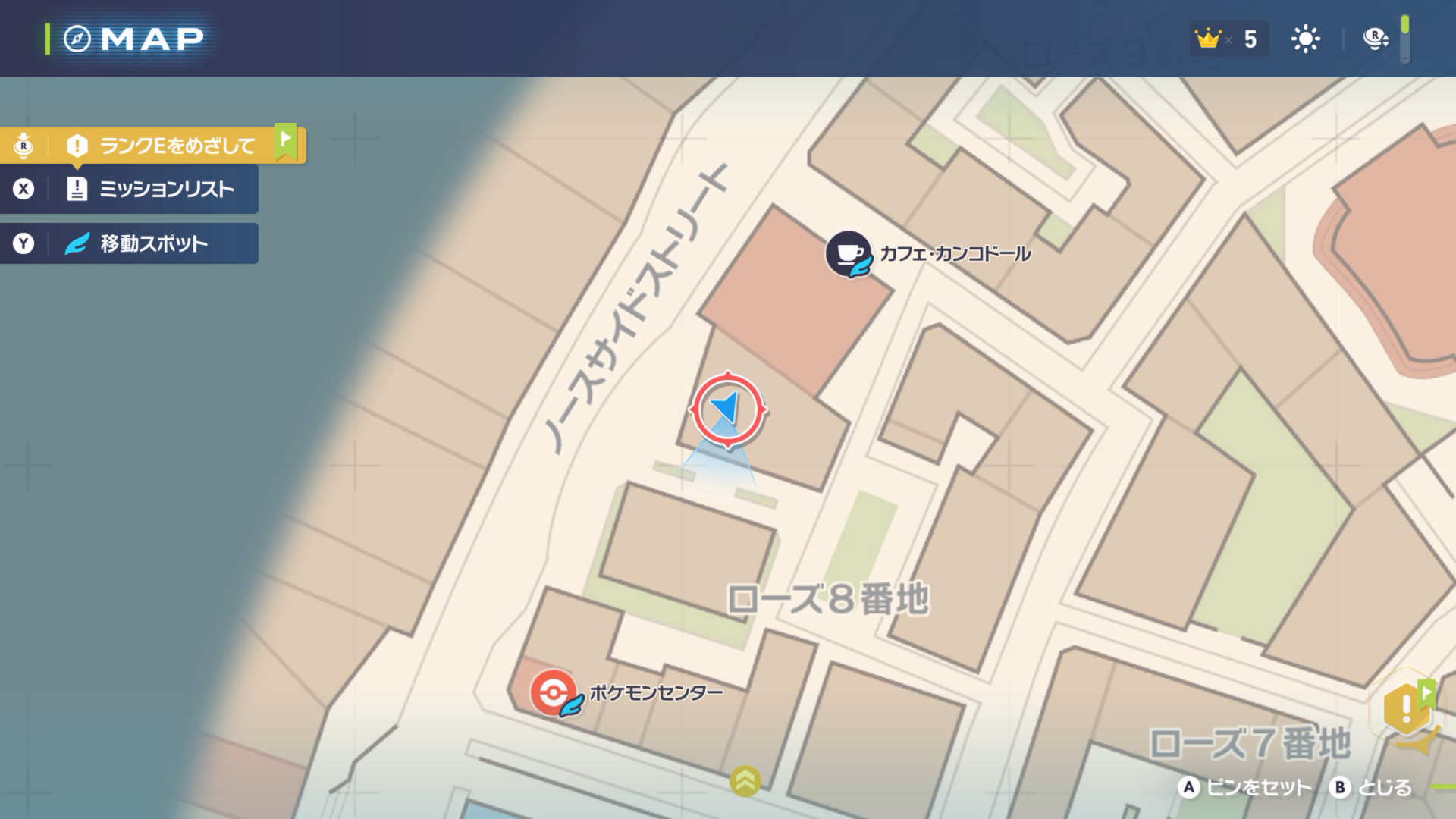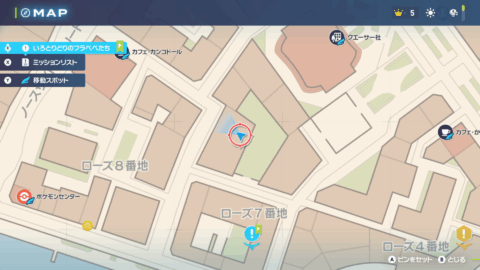 ローズ8番地のポケモンセンターの北の建物屋上のベンチ |