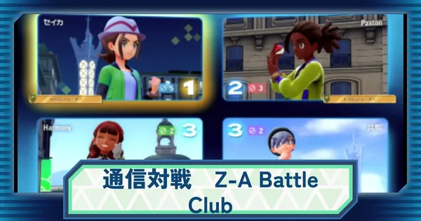 『Pokémon LEGENDS Z-A』では、2025年10月16日15時よりシーズン1が開始され、ランクバトルが解禁されました。ランクバトルは4人のプレイヤーが入り乱れて戦い、倒した数を競う形式です。この対人戦において、ジャスト交代回避のテクニックはさらに奥深い戦略を生み出します。