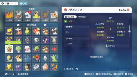 ここで入手したハリマロンは個体値3個所が「さいこう!」で確定となります。