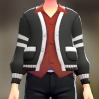 「ポケモン レジェンズ Z-A」における服装(着せ替え)「カーディガン&シャツセット - カレッジブラック レッド」の画像や販売場所・ブランドなどを紹介しています。
