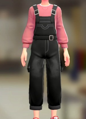 「ポケモン レジェンズ Z-A」における服装(着せ替え)「サロペット&スウェットセット - ブラックデニム ピンク」の画像や販売場所・ブランドなどを紹介しています。