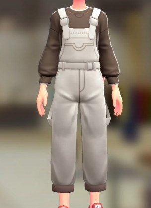 「ポケモン レジェンズ Z-A」における服装(着せ替え)「サロペット&スウェットセット - ホワイトデニム ブラウン」の画像や販売場所・ブランドなどを紹介しています。