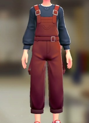 「ポケモン レジェンズ Z-A」における服装(着せ替え)「サロペット&スウェットセット - レッド ネイビー」の画像や販売場所・ブランドなどを紹介しています。