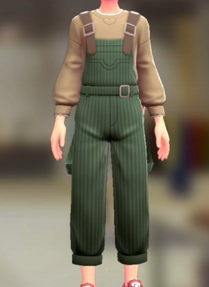 「ポケモン レジェンズ Z-A」における服装(着せ替え)「サロペット&スウェットセット - ストライプグリーン キャメル」の画像や販売場所・ブランドなどを紹介しています。