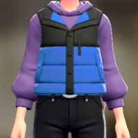 「ポケモン レジェンズ Z-A」における服装(着せ替え)「ダウンベスト&パーカーセット - バイカラーブルー パープル」の画像や販売場所・ブランドなどを紹介しています。