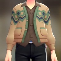 「ポケモン レジェンズ Z-A」における服装(着せ替え)「カーディガン&シャツセット - こなふきキャメル ブラウン」の画像や販売場所・ブランドなどを紹介しています。