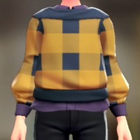 「ポケモン レジェンズ Z-A」における服装(着せ替え)「セーター&シャツセット - イエローチェック パープル」の画像や販売場所・ブランドなどを紹介しています。