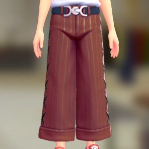 「ポケモン レジェンズ Z-A」における服装(着せ替え)「ワイドパンツセット - ボルドー ネイビー」の画像や販売場所・ブランドなどを紹介しています。