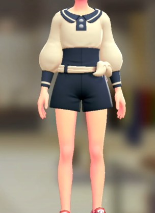 「ポケモン レジェンズ Z-A」における服装(着せ替え)「ロンパース&ベルトセット - レトロブルー アイボリー」の画像や販売場所・ブランドなどを紹介しています。