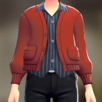 「ポケモン レジェンズ Z-A」における服装(着せ替え)「カーディガン&シャツセット - レッド ストライプネイビー」の画像や販売場所・ブランドなどを紹介しています。