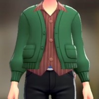 「ポケモン レジェンズ Z-A」における服装(着せ替え)「カーディガン&シャツセット - グリーン ストライプブラウン」の画像や販売場所・ブランドなどを紹介しています。