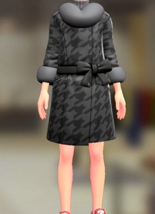 「ポケモン レジェンズ Z-A」における服装(着せ替え)「ファーコート&ニットセット - ちどりがらブラック ライトグレー」の画像や販売場所・ブランドなどを紹介しています。