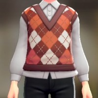 「ポケモン レジェンズ Z-A」における服装(着せ替え)「ニットベスト&ブラウスセット - アーガイルレッド ホワイト」の画像や販売場所・ブランドなどを紹介しています。