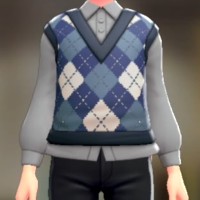 「ポケモン レジェンズ Z-A」における服装(着せ替え)「ニットベスト&ブラウスセット - アーガイルブルー ライトグレー」の画像や販売場所・ブランドなどを紹介しています。