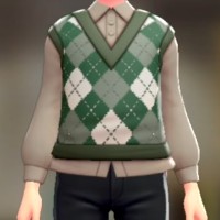 「ポケモン レジェンズ Z-A」における服装(着せ替え)「ニットベスト&ブラウスセット - アーガイルグリーン ベージュ」の画像や販売場所・ブランドなどを紹介しています。