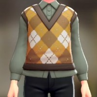 「ポケモン レジェンズ Z-A」における服装(着せ替え)「ニットベスト&ブラウスセット - アーガイルイエロー モスグレー」の画像や販売場所・ブランドなどを紹介しています。