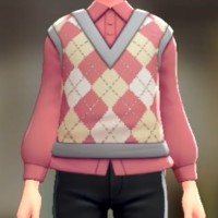 「ポケモン レジェンズ Z-A」における服装(着せ替え)「ニットベスト&ブラウスセット - アーガイルピンク ピンク」の画像や販売場所・ブランドなどを紹介しています。