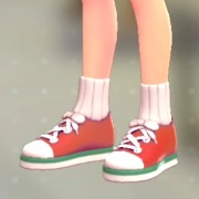 「ポケモン レジェンズ Z-A」における服装(着せ替え)「ソックススニーカー - レッド×グリーン」の画像や販売場所・ブランドなどを紹介しています。