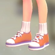「ポケモン レジェンズ Z-A」における服装(着せ替え)「ソックススニーカー - オレンジ×パープル」の画像や販売場所・ブランドなどを紹介しています。