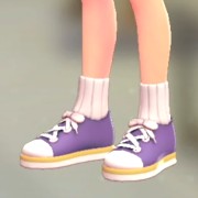 「ポケモン レジェンズ Z-A」における服装(着せ替え)「ソックススニーカー - パープル×イエロー」の画像や販売場所・ブランドなどを紹介しています。