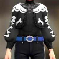 「ポケモン レジェンズ Z-A」における服装(着せ替え)「カーディガン&ブラウスセット - ボーンリボンブラック ブラック」の画像や販売場所・ブランドなどを紹介しています。