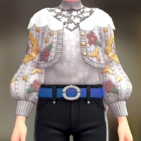 「ポケモン レジェンズ Z-A」における服装(着せ替え)「カーディガン&ブラウスセット - ホワイトフラワー オフホワイト」の画像や販売場所・ブランドなどを紹介しています。