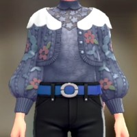 「ポケモン レジェンズ Z-A」における服装(着せ替え)「カーディガン&ブラウスセット - ブルーフラワー ブルーグレー」の画像や販売場所・ブランドなどを紹介しています。