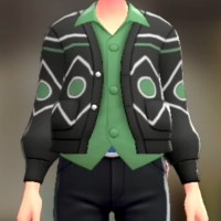 「ポケモン レジェンズ Z-A」における服装(着せ替え)「カーディガン&シャツセット - サイケブラック エメラルドグリーン」の画像や販売場所・ブランドなどを紹介しています。