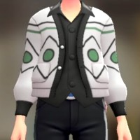 「ポケモン レジェンズ Z-A」における服装(着せ替え)「カーディガン&シャツセット - サイケホワイト ブラック」の画像や販売場所・ブランドなどを紹介しています。