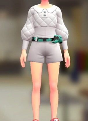 「ポケモン レジェンズ Z-A」における服装(着せ替え)「ロンバース&ベルトセット - キルティングホワイト グリーンジラフ」の画像や販売場所・ブランドなどを紹介しています。