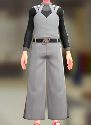「ポケモン レジェンズ Z-A」における服装(着せ替え)「サロペット&トップスセット - グレー ブラック」の画像や販売場所・ブランドなどを紹介しています。