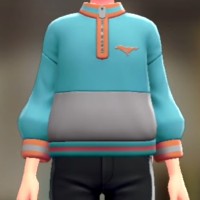 「ポケモン レジェンズ Z-A」における服装(着せ替え)「バイカラージップスウェット - ブルー×オレンジ」の画像や販売場所・ブランドなどを紹介しています。