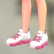 「ポケモン レジェンズ Z-A」における服装(着せ替え)「ミッドカットスニーカー - ホワイト×ピンク」の画像や販売場所・ブランドなどを紹介しています。