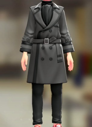 「ポケモン レジェンズ Z-A」における服装(着せ替え)「トレンチコート&パンツセット - グレー ブラック×ブラック」の画像や販売場所・ブランドなどを紹介しています。