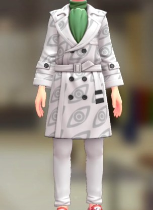 「ポケモン レジェンズ Z-A」における服装(着せ替え)「トレンチコート&パンツセット - ワイズアイホワイト グリーン×ホワイト」の画像や販売場所・ブランドなどを紹介しています。