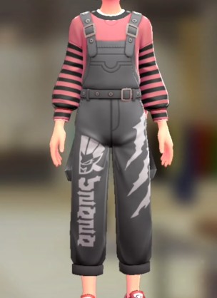 「ポケモン レジェンズ Z-A」における服装(着せ替え)「ビッグロゴサロペットセット - クローグレー ピンクボーダー」の画像や販売場所・ブランドなどを紹介しています。