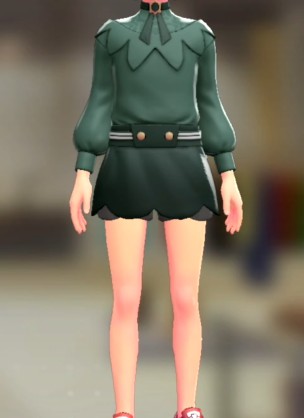 「ポケモン レジェンズ Z-A」における服装(着せ替え)「ブラウス&キュロットセット - フォレストグリーン ダークグリーン」の画像や販売場所・ブランドなどを紹介しています。