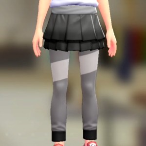「ポケモン レジェンズ Z-A」における服装(着せ替え)「スカート&ジョガパンセット - ブラック ライトグレー」の画像や販売場所・ブランドなどを紹介しています。