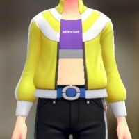「ポケモン レジェンズ Z-A」における服装(着せ替え)「ジャージ&ベアトップセット - イエロー パープル」の画像や販売場所・ブランドなどを紹介しています。