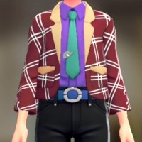 「ポケモン レジェンズ Z-A」における服装(着せ替え)「ジャケット&シャツセット - ウインドペンレッド ビビッドパープル」の画像や販売場所・ブランドなどを紹介しています。