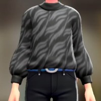「ポケモン レジェンズ Z-A」における服装(着せ替え)「ファジーセーター - ブラック×グレー」の画像や販売場所・ブランドなどを紹介しています。