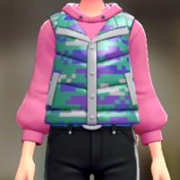 「ポケモン レジェンズ Z-A」における服装(着せ替え)「ダウンベスト&パーカーセット - レイニーモザイク タイニーピンク」の画像や販売場所・ブランドなどを紹介しています。