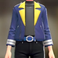 「ポケモン レジェンズ Z-A」における服装(着せ替え)「ダークジャケットセット - ブルー×イエロー グレー」の画像や販売場所・ブランドなどを紹介しています。