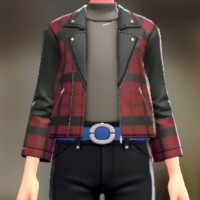 「ポケモン レジェンズ Z-A」における服装(着せ替え)「ライダーズジャケットセット - ブレイブリーレッド グレージュ」の画像や販売場所・ブランドなどを紹介しています。