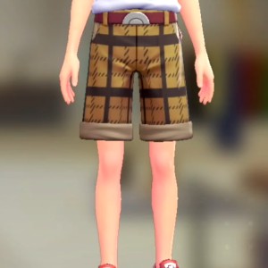 「ポケモン レジェンズ Z-A」における服装(着せ替え)「ショートテーパードセット - ブレイブリーキャメル ワインレッド」の画像や販売場所・ブランドなどを紹介しています。